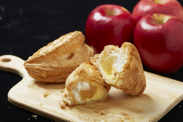 素材と製法にこだわった世界一のアップルパイ®は大ぶりカットのリンゴと特製カスタードにあと入れ豆乳チーズクリーム、仏産発酵バターによるサクサク食感のパイは秀逸。