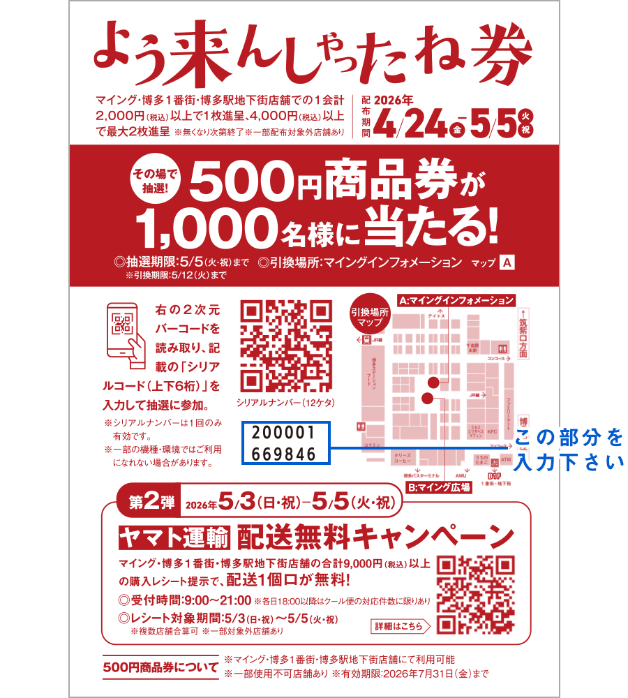 ※入力頂いた場合は、当たり画面URLが別途送信されます。(当たった場合のみ)