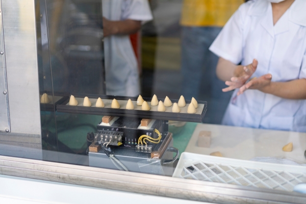 ひよ子ができあがる様子と、焼きたてならではの味わいをお楽しみください。