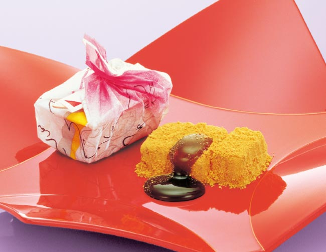 風味豊かな黄な粉のおもち。お好みで黒蜜をかけてお召し上がりください。