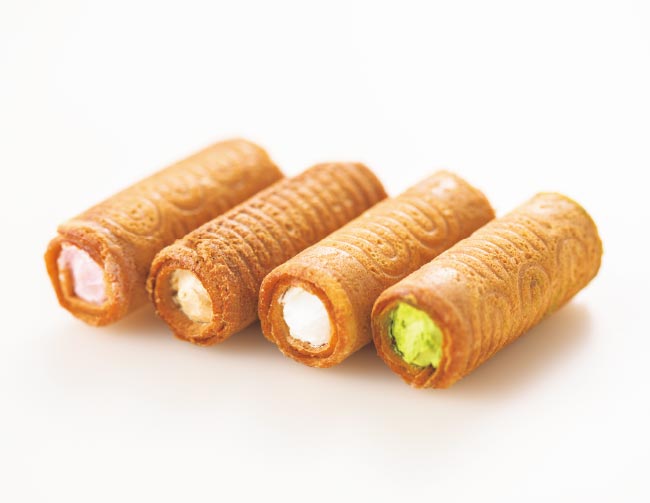 かわいい丸い缶に4種のロールクッキーが入っています。おみやげに大人気!