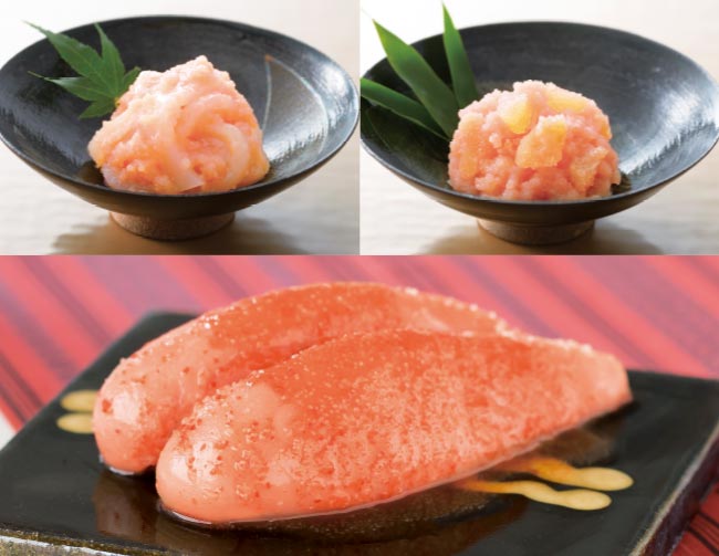 九州限定博多織明太子と、ぷりぷりのいか明太、コリコリ感がクセになる数の子明太のセットです。
