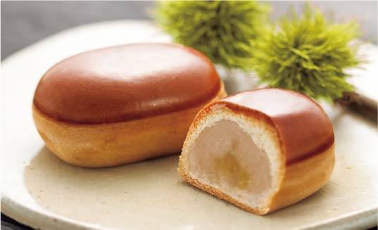 しっとりやわらかい白あんの中に、刻み栗を練り込み、艶やかな栗色に焼き上げました。