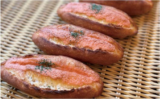 福岡県産小麦使用のザクッモチッ食感の手作りパンに、存在感のあるピリ辛明太子をたっぷり!