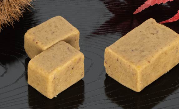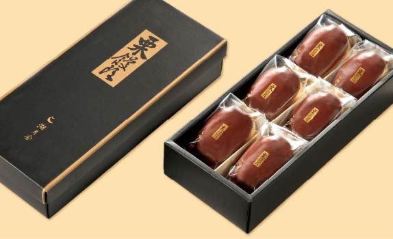 表面を艶やかな栗色に焼き上げ、白餡の中に刻み栗を入れております。