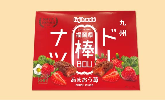 人気の黒糖ドーナツ棒のあまおう苺味!サックリしっとり食感と苺の優しい甘みと酸味が魅力。
