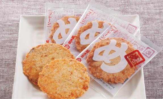 発売以来愛される元祖めんべい。噛むほどに明太子と海鮮の旨味が出る、やみつきの美味しさです。