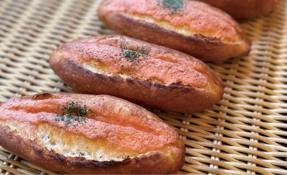 国産小麦の自家製バゲットと明太子が絶妙にマッチし、明太とバターの風味がやみつきになります。