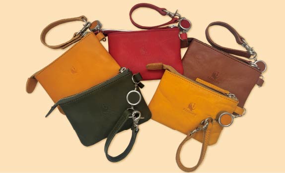 博多らしいにわか面をあしらった小銭入れです。アクセサリー入れなどにもおすすめです。