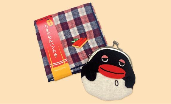 にっぽんチャチャチャ博多店限定キャラクターの”ぺんたいこ”と一目で博多のお土産とわかる博多うまかもんハンカチをセットにした商品です。